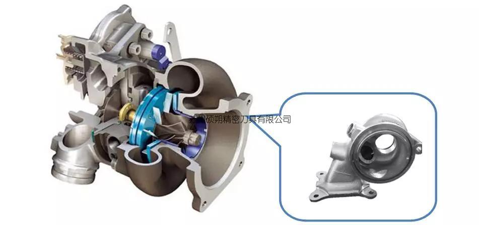 渦輪增壓的原理:是將廢氣轉(zhuǎn)換為動力,提高發(fā)動機的功率和扭矩。渦輪殼是渦輪增壓器的重要組成部分,由雙相不銹鋼鑄成,渦輪殼材料牌號一般為1.4848,1.4837,1.4826,此類材料微觀組織是由鐵素體相和奧氏體相組成,物理性能介于奧氏體不銹鋼和鐵素體不銹鋼之間,材料粘性高,韌性強,加工后有回彈;對加工渦輪增壓殼體的刀具要求相對較高,SS/碩朔生產(chǎn)、定制各種非標成型刀具