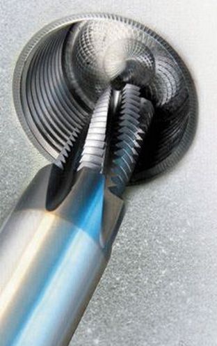 ●盲孔絲攻不可攻到底部,螺紋銑刀亦可一刀實現(xiàn)。